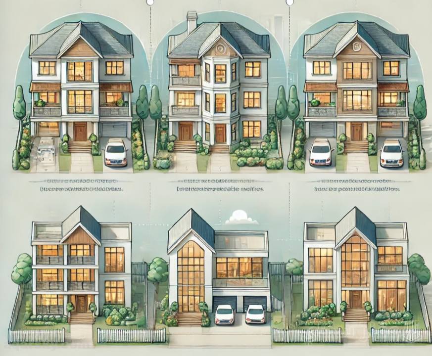 - أما بالنسبة للتاون هاوس فهو من خلال وحدة سكنية متعدد الطوابق تتشارك مع الوحدات الأخرى في جدارين على الأقل، الأمر الذي يساعد على توفير المساحة والتكلفة، كما أنه يمتلك تصميم عمودي مشابه للشقق وفي نفس الوقت يمتلك مساحة خارجية تصلح لأن تكون فناء أو حديقة.