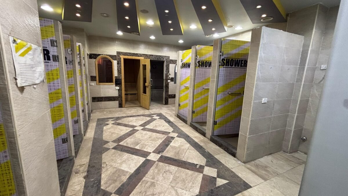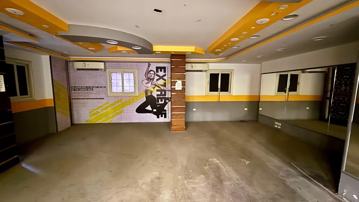 الدور الارضى به 3 ساونا ـ 1 جاكوزى ـ 7 شاور ـ حمام كبير 2 غرفة ماستر ـ 5 غرف + كيدز اريا الدور الاول به غرفة واحده فقط وريسيبشن مفتوح كله بانوراما زجاجية مطله كلها علي الشارع يصلح لكافه الاغراض الادارية والتجارية