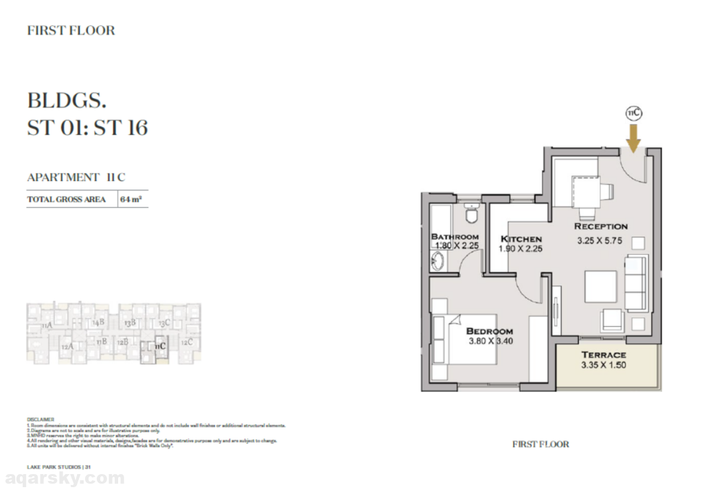 استديو للبيع تاج سيتي ف ال لاك بارك | 64م طوب احمر دور 4
