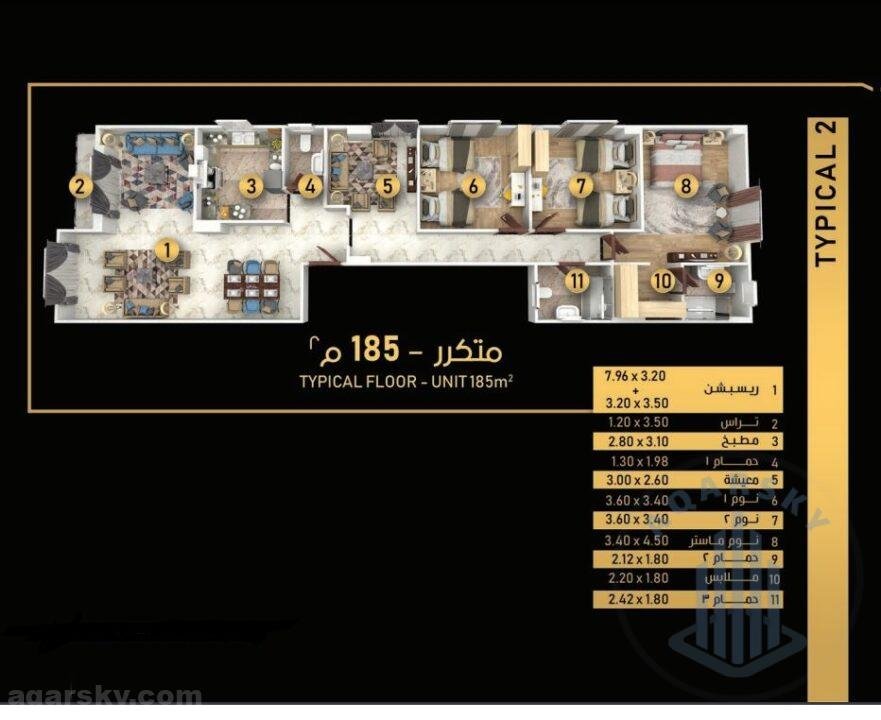 شقة للبيع في التجمع الخامس بمساحة 185 متر