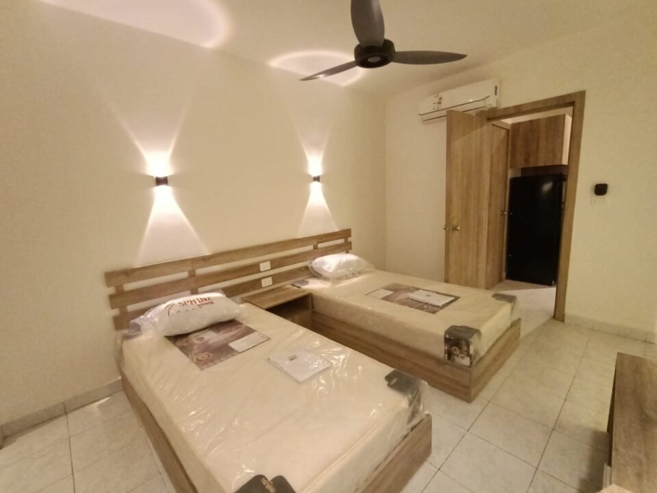 كل دور يحتوى على 8 شقق 6 شقق (غرفة وصالة ) 2 شقق (غرفتين وصالة ) المساحات التقربية للشقق من 420 الى 75 متر2 – تشطيب وفرش فندقى عالى المستوى