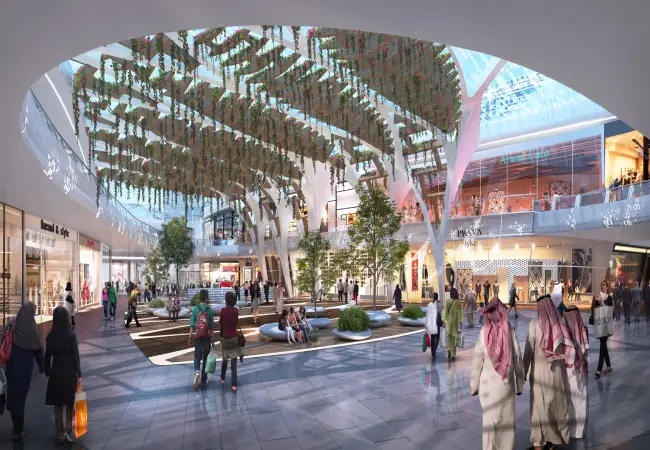 - راعى المطور العقاري للمشروع تخصيص مساحة كبيرة للمسطحات الخضراء، سعياً نحو توفير الهواء النقي والمنظر الخلاب بالمول.