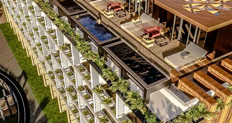 - صممت الشركة المطورة المشروع على هيئة تصاميم المنتجعات السياحية العالمية.