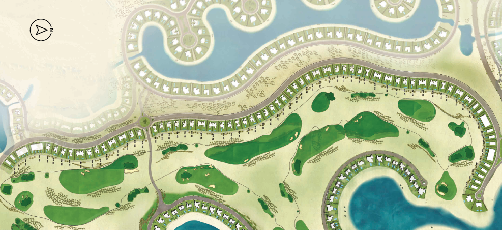 - منطقة الجولف وتقع وسط المساحات الخضراء واللاند سكيب.
