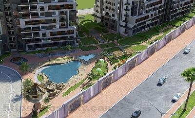 - المساحات الخضراء التي تمتد داخل انحاء الكمبوند، والحدائق والنوافير الصناعية رائعة المنظر، والبحيرات الصناعية رائعة التصميم.