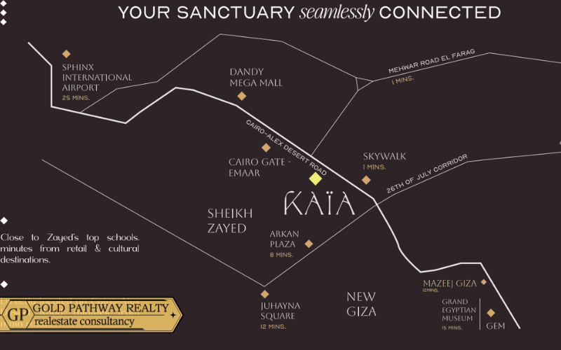 الأماكن والطرق القريبة من كمبوند كايا الشيخ زايد Kaia El Sheikh Zayed :