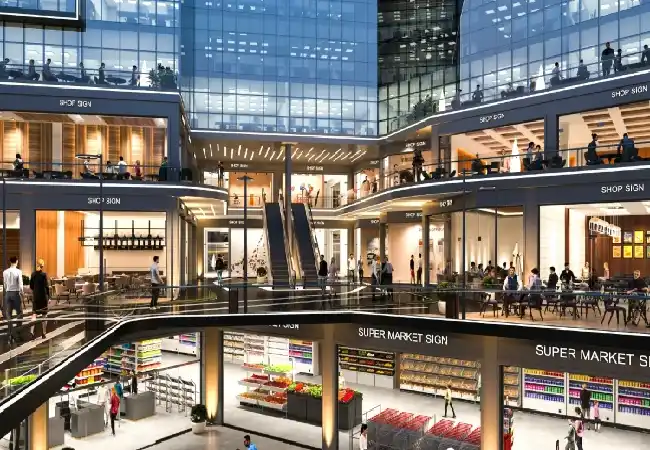 - المرافق والخدمات المتكاملة: يضم المشروع كافة المرافق الحديثة والخدمات الأساسية والترفيهية التي تضمن بيئة عمل مريحة وتجربة متميزة للزوار، بدءًا من الأمن والصيانة وحتى المناطق الخضراء وأماكن الجلوس، مما يعزز من القيمة الاستثمارية للمول.